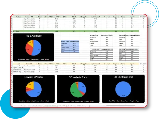We analyze the top 5 ranked competitors for each targeted search query and prepare a graphic report showing exactly what is needed for your client to compete.